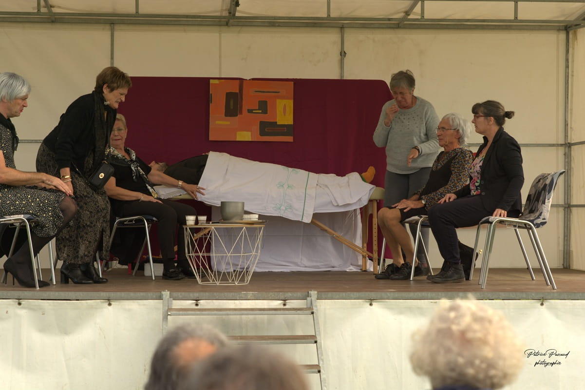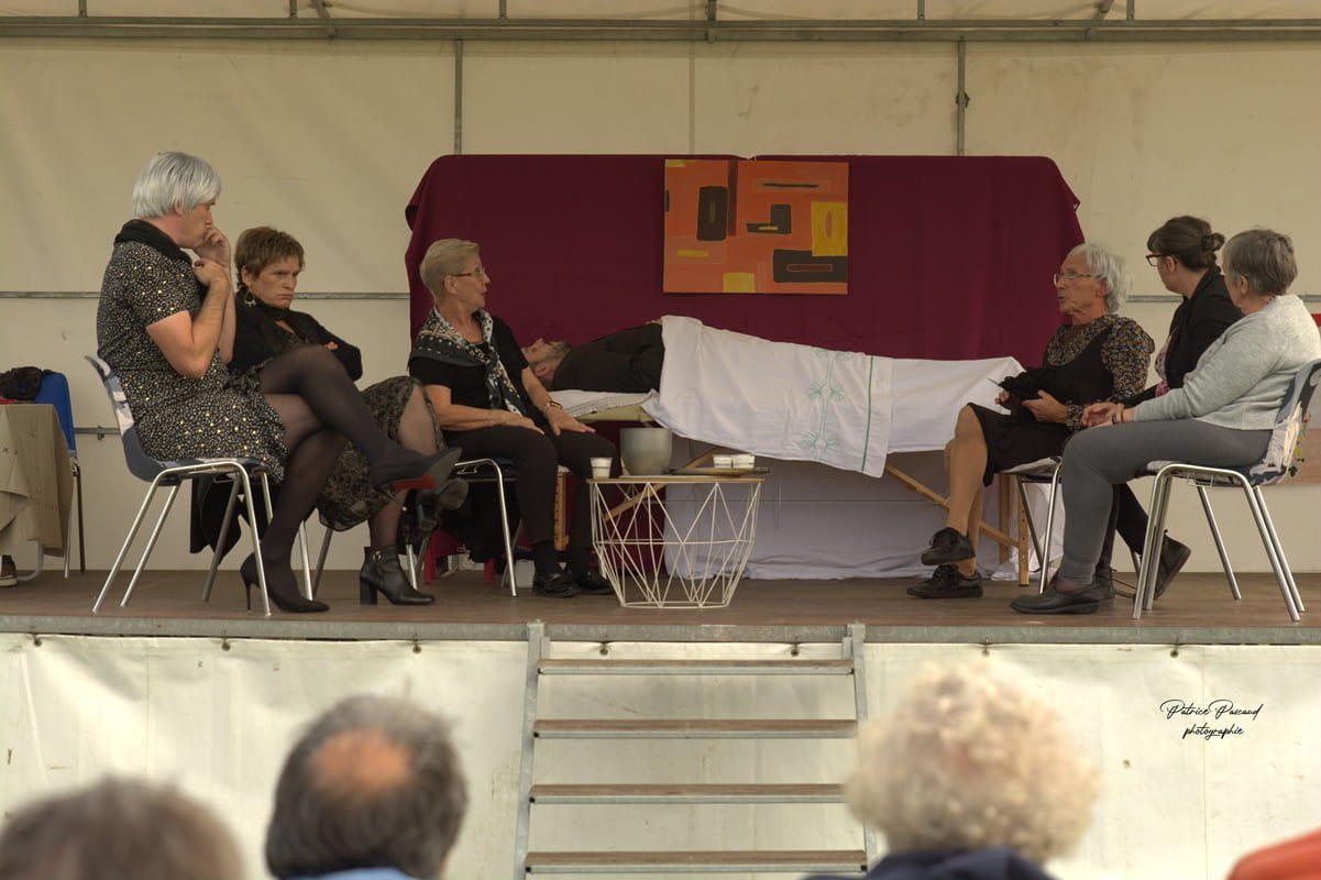 Un texte d’une infinie tendresse pour tous ceux qui osent se mettre à nu sur une scène et qui y perdent Germain n’en finit pas de mourir, au grand désespoir de sa veuve, Angèle, entourée de ses amies Blandine, Colette, Denise, Emilie et Félicitée. Une veillée mortuaire qui sera tout… sauf funèbre !