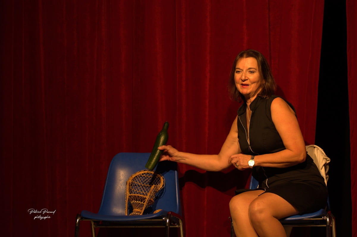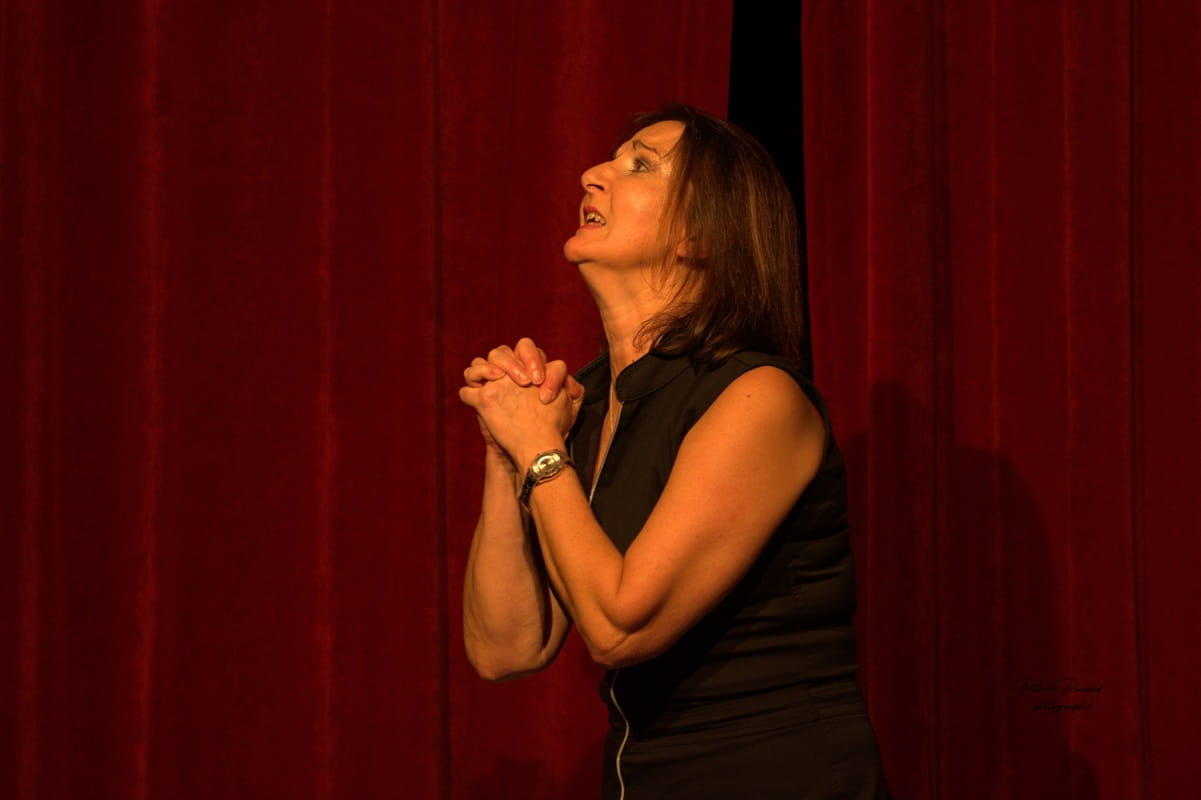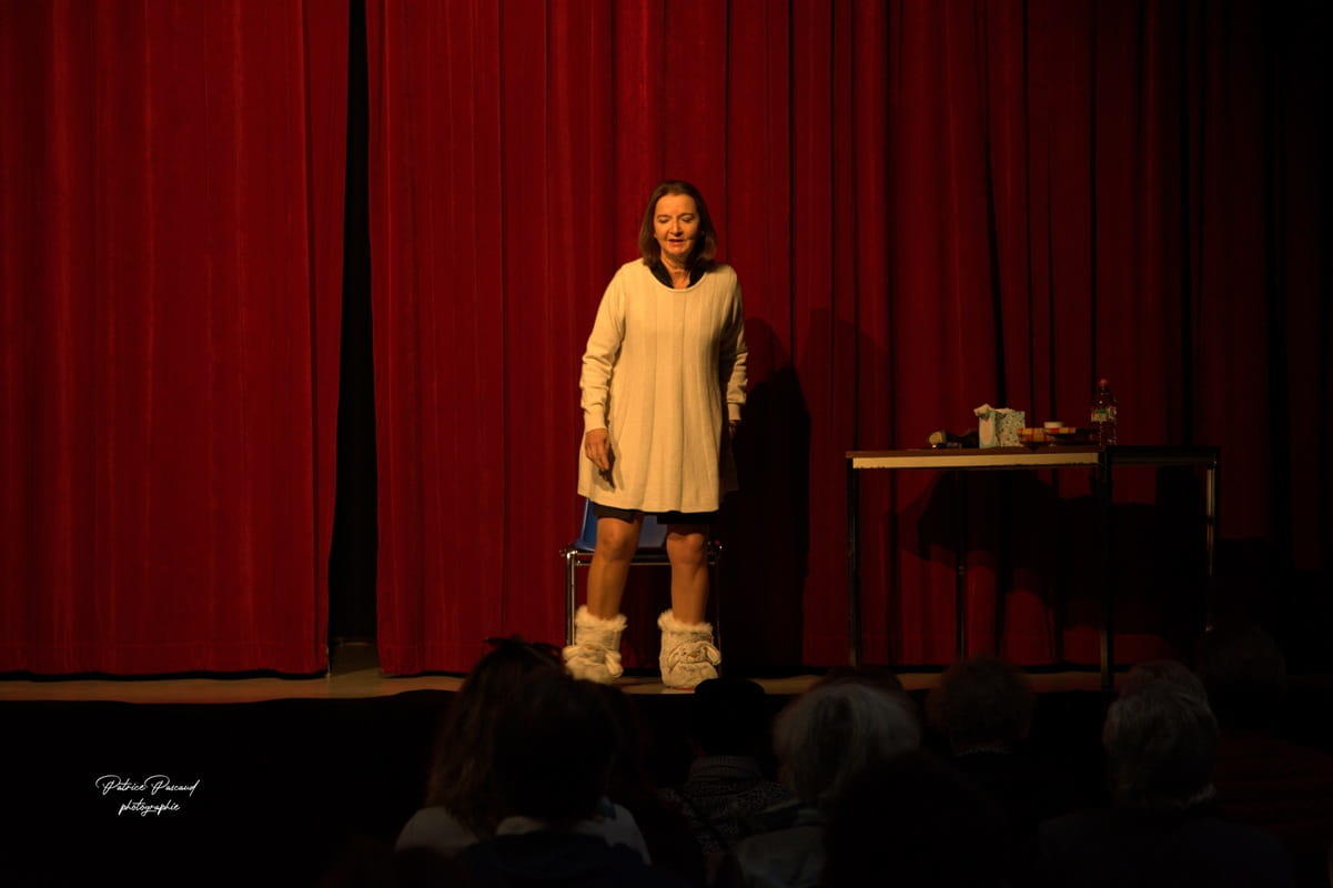 Véronique Seule en Scène a interprété la pièce Virginie toujours Célibataire à la Salle des fêtes de Virelade.