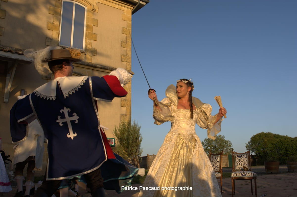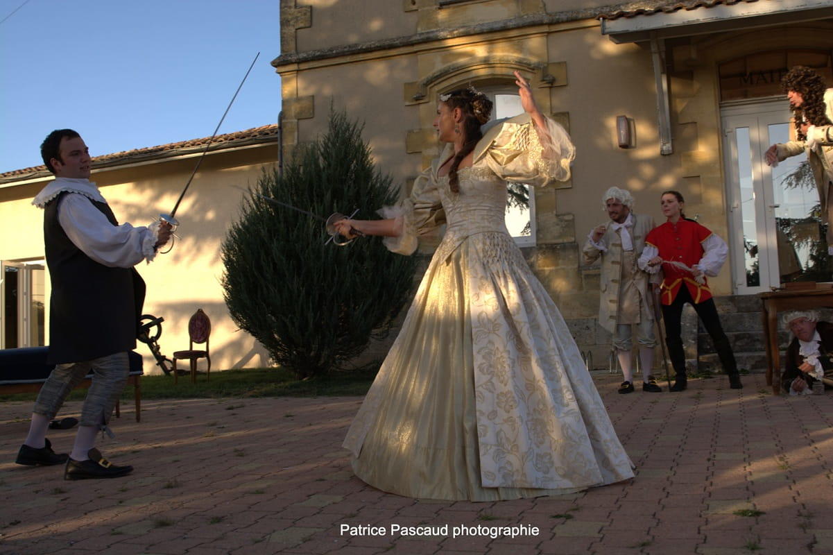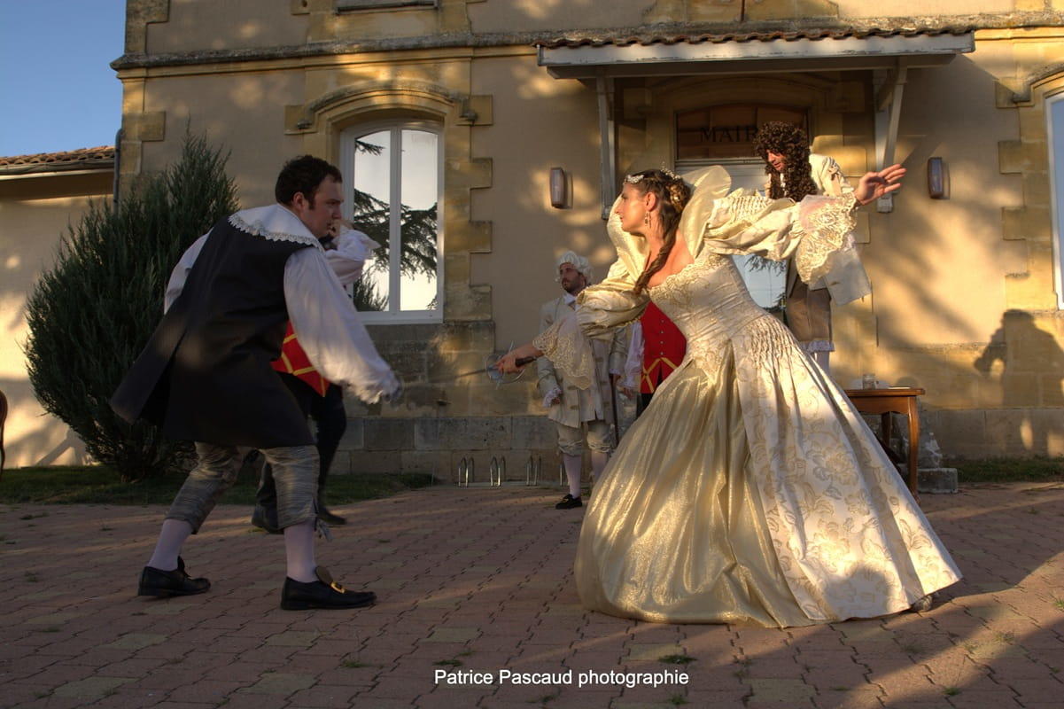 Une pièce de théâtre dans les classiques des capes et épées.
