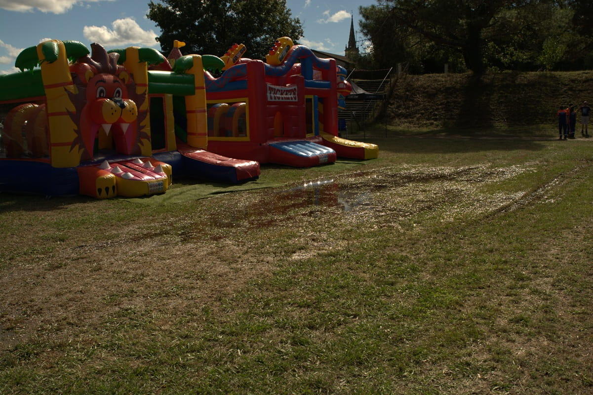 Ouverture de la deuxième journée du festival Musica Vir’Live, sous un beau soleil, les enfants ont pu s’amuser dans les jeux gonflables sous la surveillance des parents et des bénévoles le temps de finir de mettre en place les scènes ouvertes !